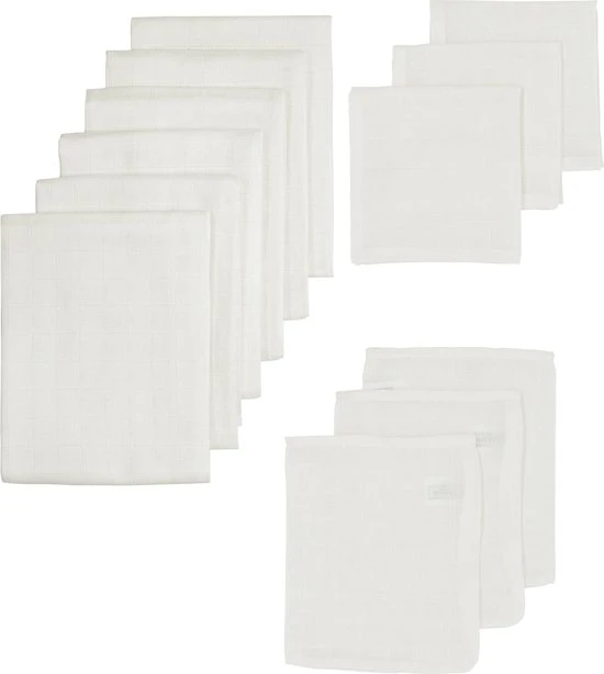 Deze Meyco Baby hydrofiele starterset Uni Offwhite is de absolute must have voor jouw babyuitzet. De set bestaat uit hydrofiele luiers, monddoekjes en washandjes. De verschillende items zijn onmisbaar en multifunctioneel te gebruiken. Gemaakt van 100% hydrofiel katoen neemt het materiaal vocht goed op, droogt snel en voelt extra zacht aan de tere babyhuid. Gebruik de luiers als handdoek na het badje, als onderlegger bij het verschonen of als hoofdeinde in de wieg, de kinderwagenbak of box. De monddoekjes zijn ideaal bij het voeden en de washandjes voor het wassen of poetsen van vieze snoetjes!