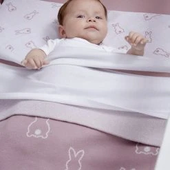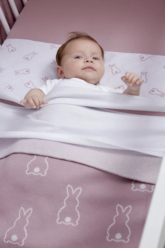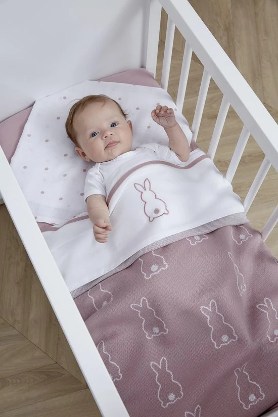 Supersnoezig! Deze Meyco Baby Deken Rabbit uit de Meyco X Mrs. Keizer Rabbit collectie, biedt jouw kleine slaper extra zacht comfort en warmte. De gebreide deken heeft op de voorkant een breisel met schattige konijntjes en de achterkant is effen. Gebruik de deken op een Meyco Baby laken om het bedje op te maken.