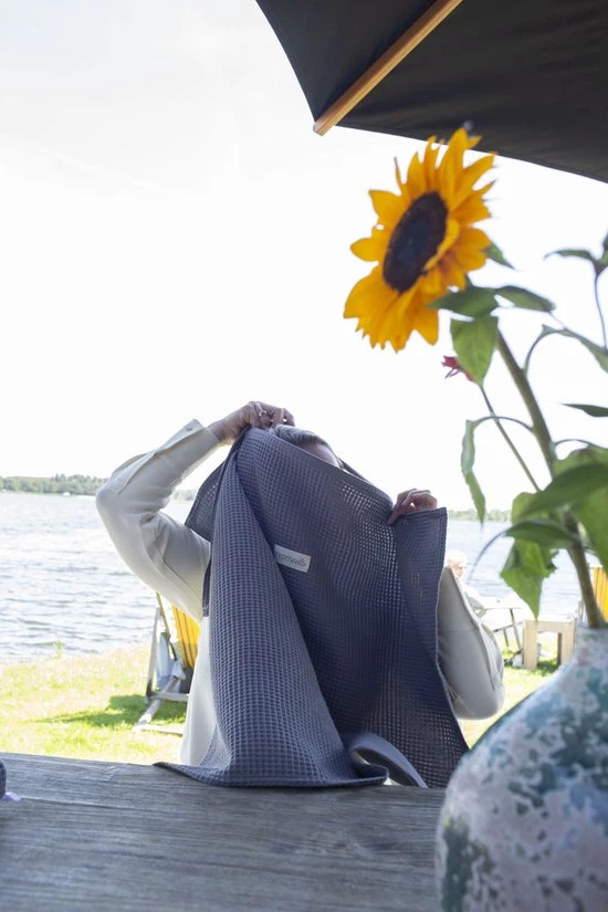 De voedingsdoek heeft een buigzame baleinen band waardoor het contact en de toevoer van frisse lucht behouden blijft.
