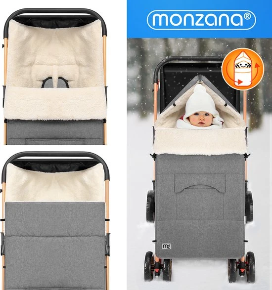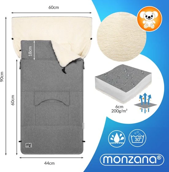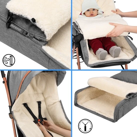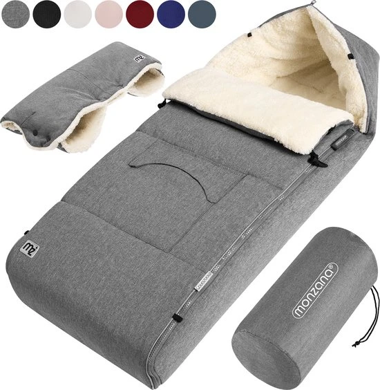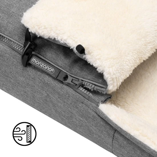 De behaaglijke voetenzakken van monzana? zijn ideaal om jouw kind comfortabel warm te houden in het koude seizoen. De buitenste laag van zowel de voetenzak als de handwarmer is gemaakt van wind-, vuil- en waterafstotend materiaal en beschermt dus tegen kou en nattigheid. Je kunt de tas openen en sluiten via de ritsen, die helemaal open kunnen en je voetenzak snel omtoveren tot een aankleed- of kruipmat.