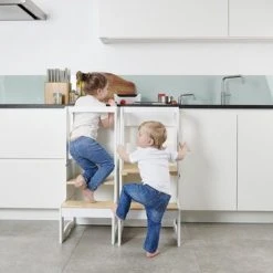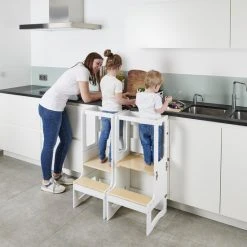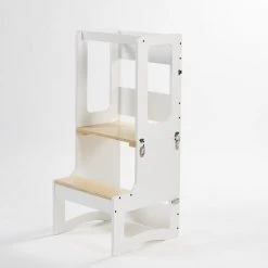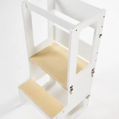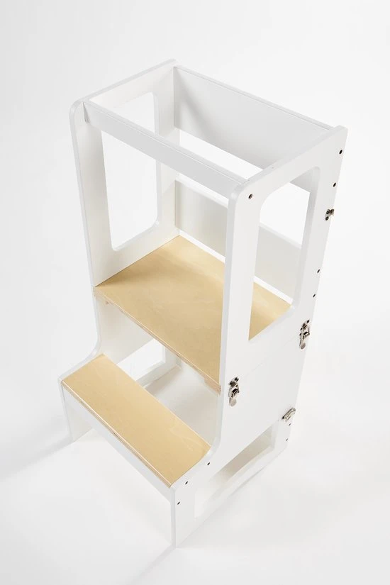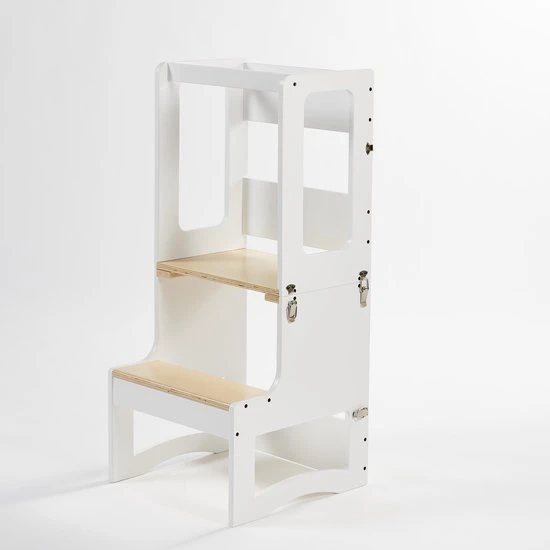 Onze leertorens hebben een leuk design. Ze hebben bovendien ronde vormen zodat jouw kindje zich er geen pijn aan kan doen. Ze zijn niet te breed zodat ze niet veel ruimte in beslag nemen, maar zijn zeer stevig want ze zijn getest om minstens 50kg te kunnen dragen. Anderzijds zijn ze licht genoeg (7 kg) om eenvoudig verplaatst te worden naar waar je maar wil: de keuken, de badkamer, het raam, de slaapkamer, ? De materialen zijn zorgvuldig geselecteerd en veilig. Zo kiezen we alleen voor verf op waterbasis.