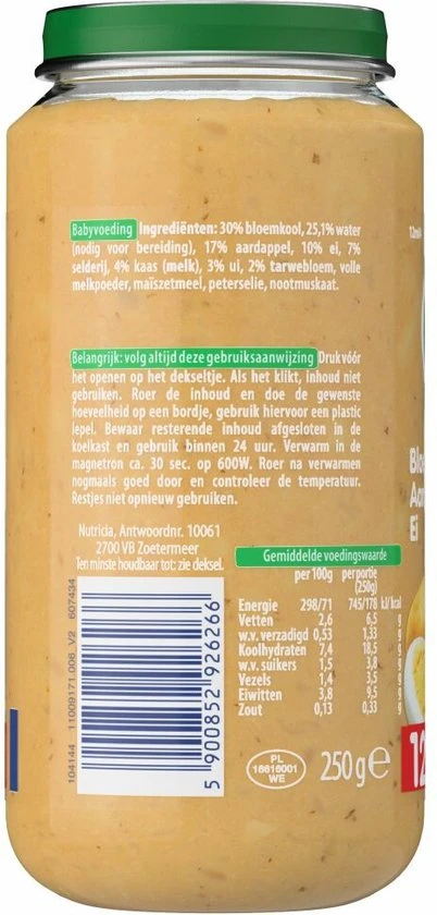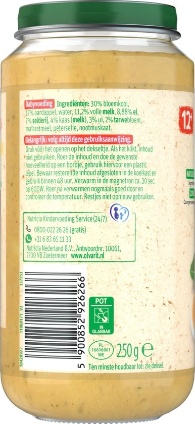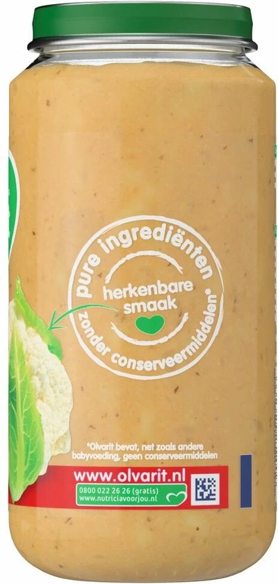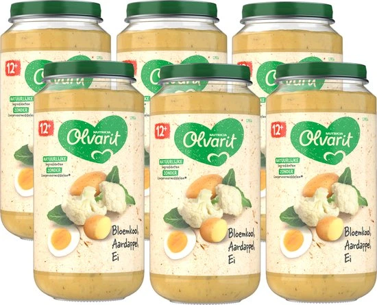6-pack Olvarit Maaltijdhapjes Bloemkool Aardappel Ei, geschikt voor baby?s vanaf 1 jaar oud. Een babyhapje met een herkenbare smaak & textuur dat bijdraagt aan de smaakontwikkeling.