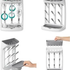 Het flessendroogrek heeft een compact design, met een grote impact. Want dit plaats-besparend flessendroogrek plaats je rechtopstaand, zodat niet je hele aanrecht in beslag wordt genomen. De schuine haken zorgen ervoor dat water uit je flessen kan lopen, en de kleine onderdelen zoals spenen en tutjes kan je in het bovenste en onderste gedeelte plaatsen. Je kan het flessendroogrek helemaal uit elkaar halen, om zo grondig te kunnen reinigen.