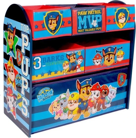 Berg al je spulletjes netjes op met de vrolijke opbergkast van PAW Patrol! Opruimen wordt op deze manier een groot feest. Deze praktische opbergkast van PAW Patrol zorgt niet alleen voor een opgeruimde kamer, maar de leuke printjes op de buitenkant fleuren de boel ook nog eens op!