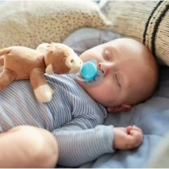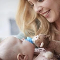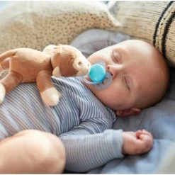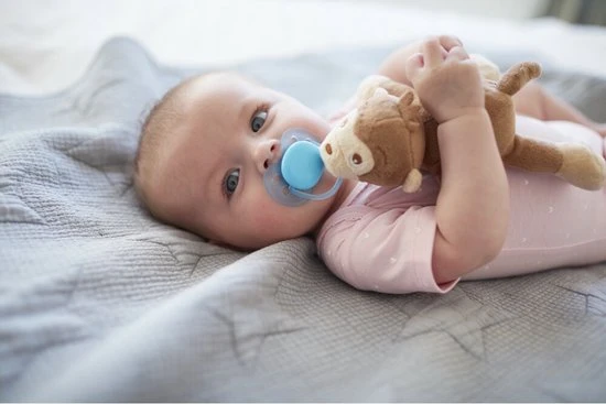 De knuffel wordt aanbevolen voor baby’s van elke leeftijd en kan met elke fopspeen worden gebruikt