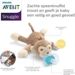 Je Philips Avent-snuggle is voorzien van een eraan bevestigde Soothie-fopspeen of ultrazachte fopspeen. De aanbevolen leeftijd voor het gebruik van de knuffel en fopspenen: