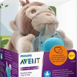 De ultrazachte Philips Avent-Knuffel is een pluche dier met een ultrazachte speen. Door een lichte verzwaring blijft de knuffel dicht tegen je baby aan liggen om een veilig gevoel te geven. De knuffel is eenvoudig van de speen los te maken, waardoor schoonmaken geen probleem vormt.