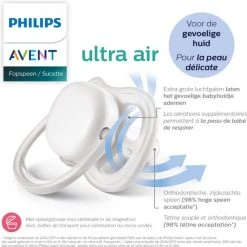 Geef je peuter een fopspeen die de huid laat ademen en die een gezonde mondontwikkeling ondersteunt. De ultra air 18m+ heeft extra grote luchtgaten om de gevoelige huid zacht en droog te houden, en een extra stevige speen voor groeiende tanden en tandvlees.