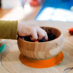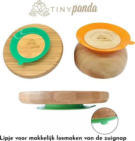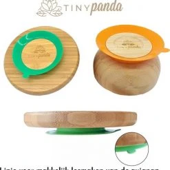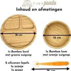 - 1x Bamboe kinderbord met vakjes en 1x Bamboe kinderkom met afneembare siliconen zuignap