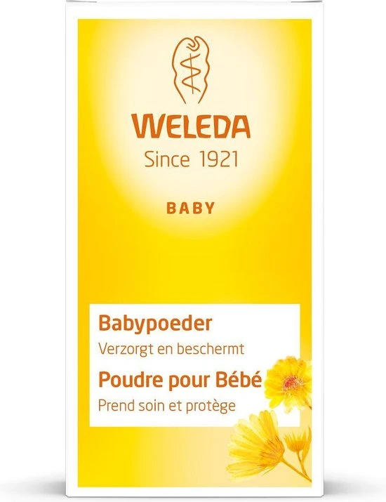 Het kan gebeuren dat de babyhuid geïrriteerd raakt. Bijvoorbeeld door vocht in de huidplooitjes na het badje. Deze 100% natuurlijke babypoeder met talk bevat waardevolle plantenextracten. Dit absorbeert vocht en beschermt de gevoelige babyhuid tegen irritaties. Extracten van Calendula, Arnica en Echinacea verzorgen de huid. Babypoeder is te gebruiken voor huidplooitjes en billetjes. Ook is deze poeder geschikt voor de navelverzorging in de eerste weken na de geboorte. Babypoeder helpt om het navelstompje sneller te laten indrogen.