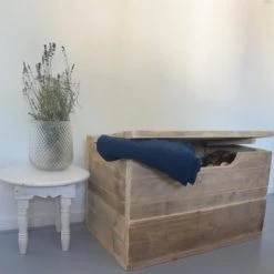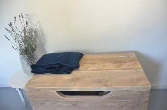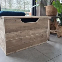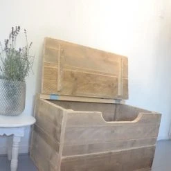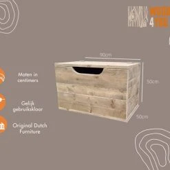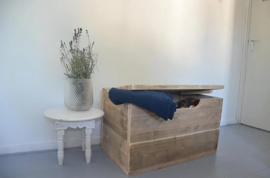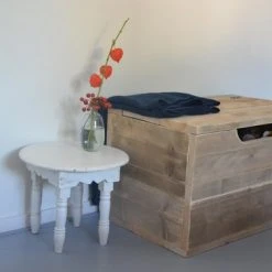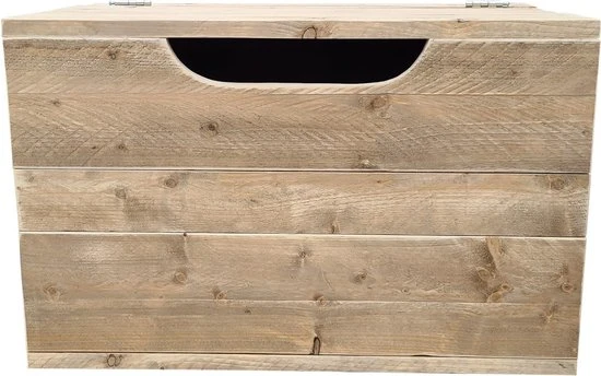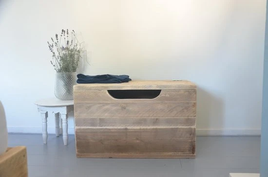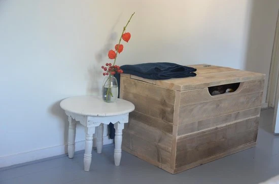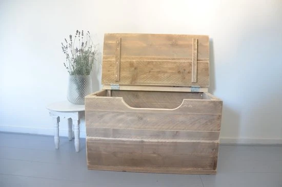 Op zoek naar een leuke opbergplek voor rondslingerend kinderspeelgoed? Dan is deze speelgoedkist ”Kick” wellicht iets voor je! Deze kist past zich gemakkelijk aan op ieder interieur maar staat ook zeker leuk op de kinderkamer. Snel en gemakkelijk berg je hier het speelgoed in op. Deze kist is handgemaakt van steigerhout.
