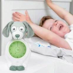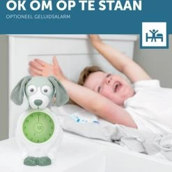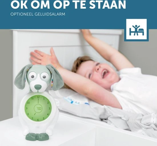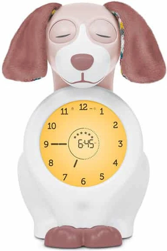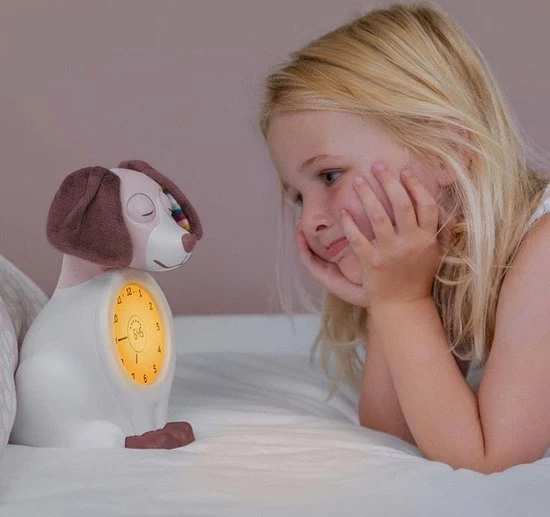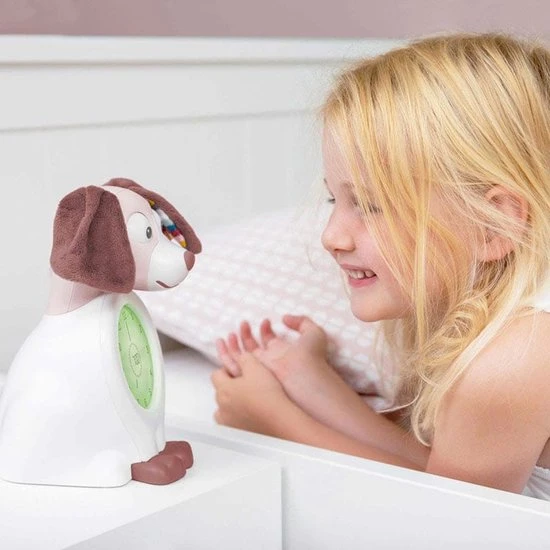 Wanneer Davy the Dog de ogen opent (op een door papa of mama ingestelde tijd), het schermpje groen oplicht en het zonnetje op het scherm verschijnt, is het tijd om op te staan. Dit kan met of zonder geluid gebeuren, zodat je kindje, als het nog lekker slaapt, niet per sé wakker gemaakt hoeft te worden.