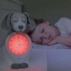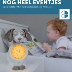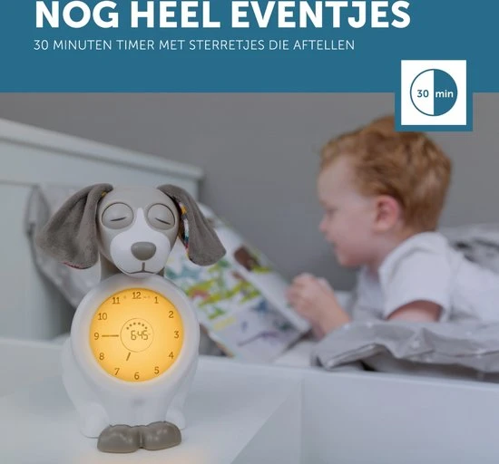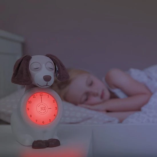 Als je kindje de volgende dag wakker wordt terwijl het nog geen tijd is om op te staan, laat Davy the Dog zien hoe lang het nog duurt tot hij wakker wordt. Als het nog maar een half uurtje duurt voor het tijd is om wakker te worden, zal het scherm van Davy oranje oplichten. Je kind hoeft dan nog maar heel even geduld te hebben! De sterretjes op het scherm tellen af wanneer het half uur voorbij is.