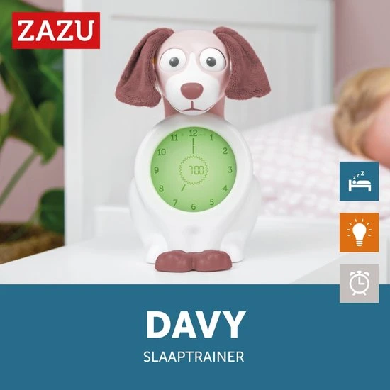 Om kinderen op een leuke manier te helpen met opstaan heeft Zazu de kinderwekker en slaaptrainer Davy ontwikkeld. Op een eenvoudige manier laat Davy the Dog zien wanneer kinderen op kunnen staan zonder dat ze papa of mama te vroeg wakker maken.