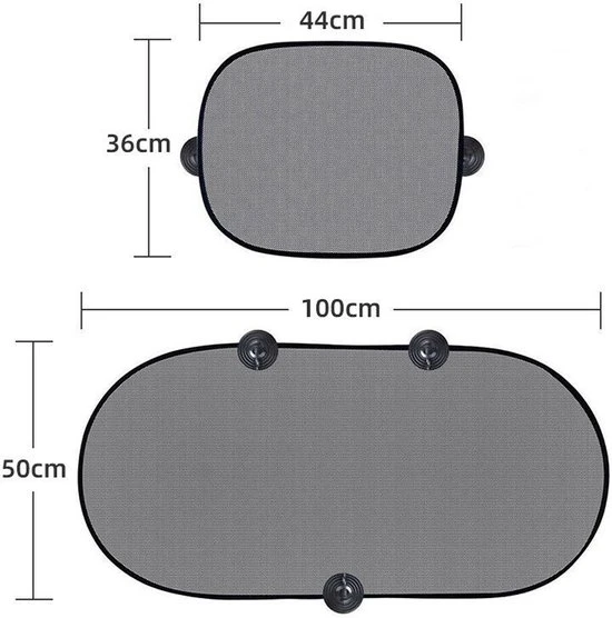 – 5 stuks autozonweringnetten voor zijruit en achterruit inclusief 8 zuignappen.